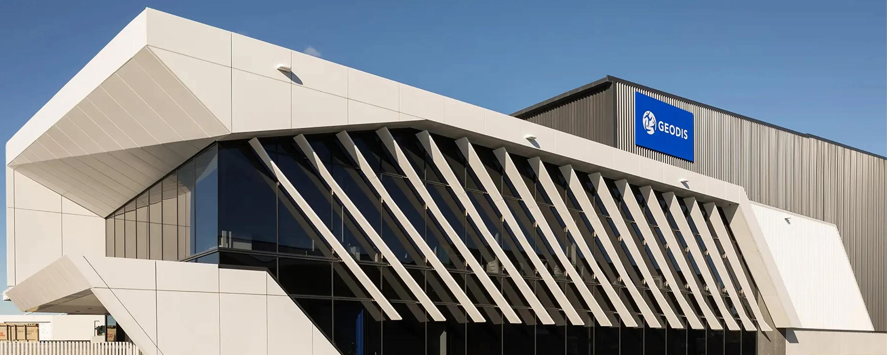 The Geodis office and warehouse project represents a dynamic integration of office and warehouse functionalities within a singular, architecturally sophisticated structure. The office component stands as a distinguished two-story building, encompassing an expansive 700m2 floor area, while the warehouse component assumes the form of a high-stud warehouse, boasting an impressive 5,000m2 floor area. The entirety of the project unfolds across a sprawling site area of approximately 10,526m2, providing a spacious canvas for the realisation of this mixed-use endeavour. A defining feature of the warehouse's exterior is the utilization of precast concrete panels, not only contributing to the facility's robustness but also imparting a distinctive aesthetic character. In contrast, the office facade embraces modernity with the incorporation of the APL Flush glazed curtain wall system, seamlessly complemented by the presence of APL featured louvres, adding both functional and aesthetic dimensions to the architectural ensemble. The structural integrity of the entire edifice is underscored by its designation as an important Level 2 structure, embodying a robust design life of 50 years. In essence, the Geodis office and warehouse project emerges as a harmonious convergence of form and function, where architectural innovation meets practical utility in a structure poised for enduring significance.